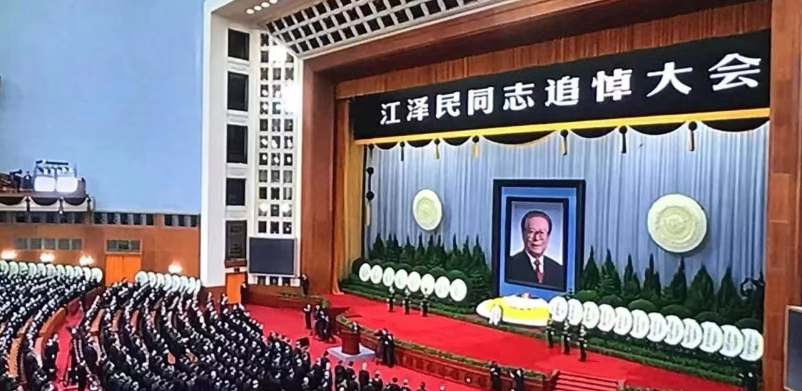 12月6日上午10时,党中央、全国人大常委会、国务院、全国政协、中央军委在北京人民大会堂隆重举行江泽民同志追悼大会。
