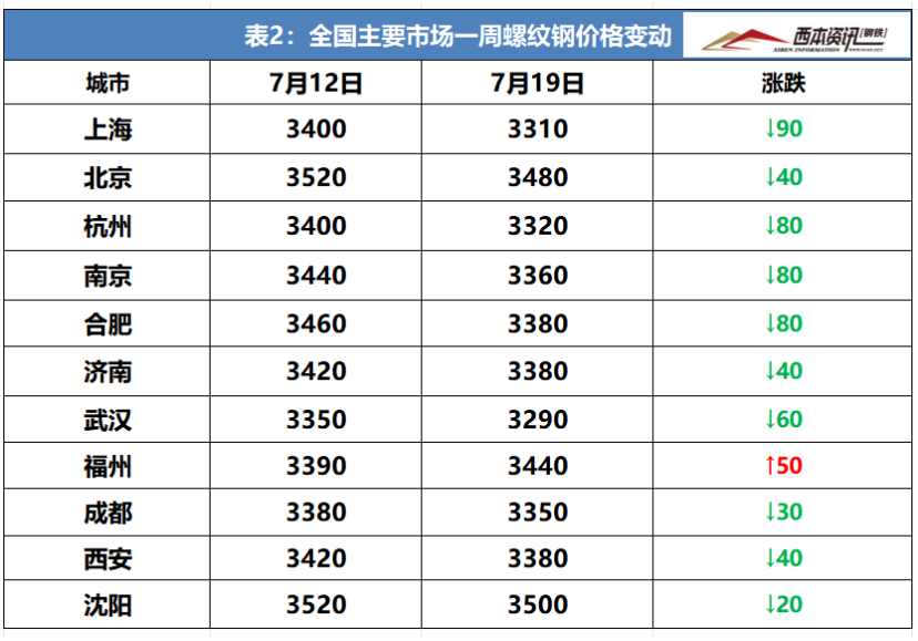 本周国内建筑钢材涨后下跌,截至7月19日,西本指数报在3610,较上周五下跌60。