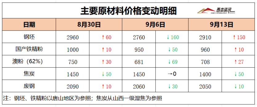 ●综合观点:中秋国庆双节临近,终端补库需求增加,期螺合约再度探底反弹,投机商进场积极,螺纹资源持续降库,部分钢市规格紧缺,市场情绪提振,导致各地钢价大幅反弹。下周国内钢市如何演绎?具体情况来看,在供应端,钢企盈利率6.06%,环比增加1.73%;高炉开工率77.63%,环比上周持平。在需求端,房地产需求略有增加,汽车产销、钢材出口等环比增量。综合来看,钢厂盈利率小幅改善,螺纹产量小幅回升,后期投放有回升空间;原料刚需适度增量,焦炭首轮提涨开启,铁矿市场震荡偏强;全国旧标螺纹持续消化下,不具备销售压力,新标资源成为各地主流;商家现货库存偏低,但假期资源正常到货,偏紧规格略有改善,以及钢价大涨后,需要终端消化接纳等,鉴于此,我们对下周市场行情持中性评价——蓝色预警,具体来说,西本钢材指数下周将在3500-3600元区间运行。