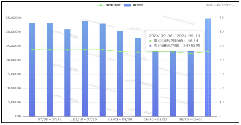 从终端需求来看,据钢小二平台周均值数据显示,9月13日全国工程需求量周均值为34785吨,环比周均值增加26%。其中,上海周均值15420吨,环比周均值增加;广州5600吨,环比周均值增加;杭州5035吨,环比周均值增加。工程需求pmi为46,需求略差。