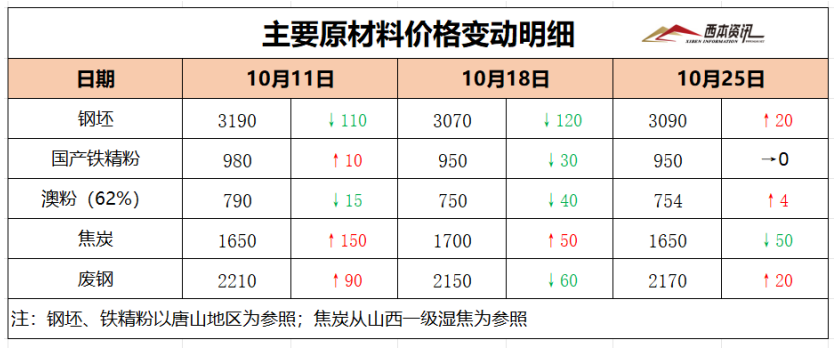 本周国内主要原料表现分歧,其中,进口矿价窄幅震荡,钢坯行情震荡见涨,国产矿相对平稳,焦炭首轮提降落地,废钢市场先扬后抑,分品种来看: