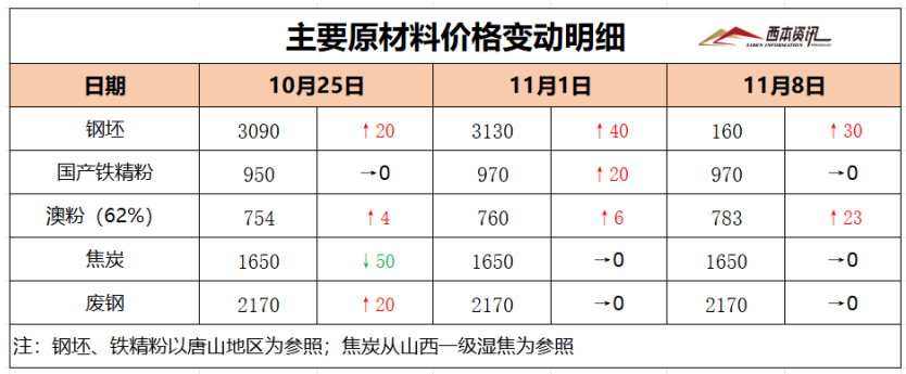 11月8日西本钢材价格指数走势预警报告