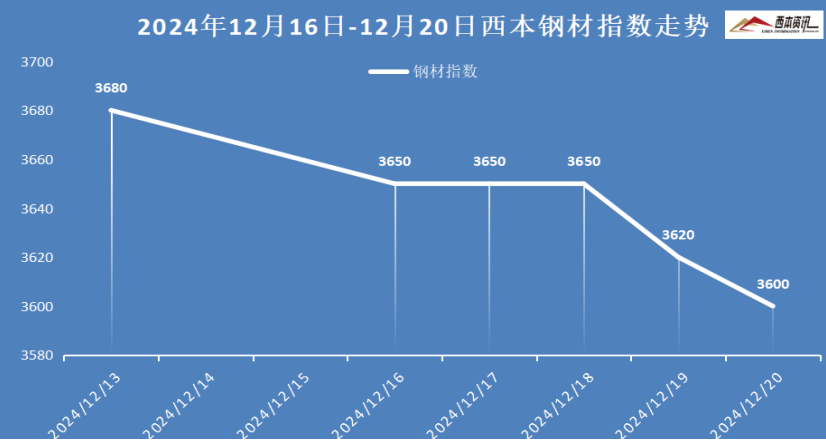 本周国内建筑钢材先稳后跌,截至12月20日,西本指数报在3600,周环比下跌80。