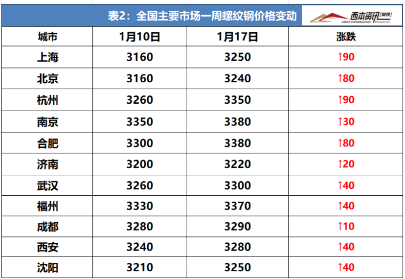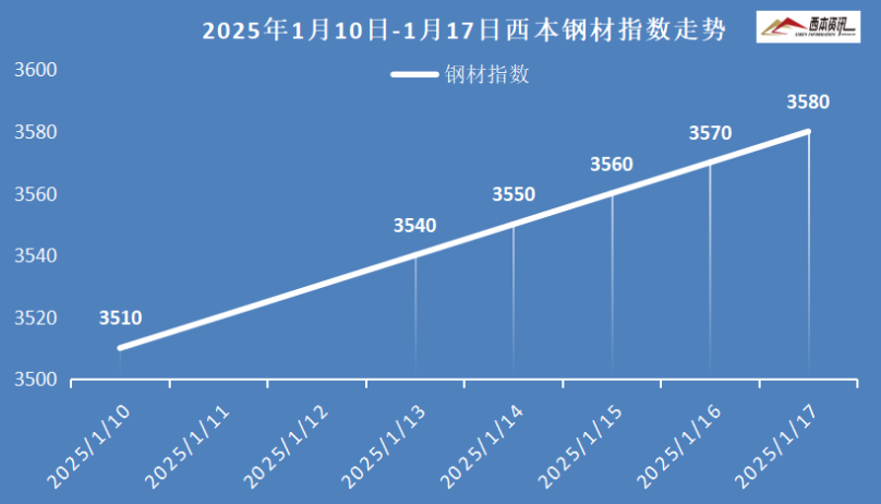 本周国内建筑钢材接连小幅探涨,截至1月17日,西本指数报在3580,周环比上涨70。