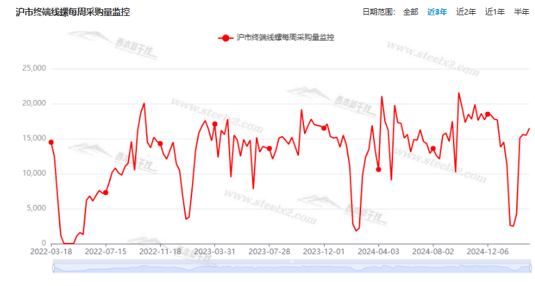 本期,西本资讯监测的沪市线螺周终端采购量为1.65万吨,周环比增加6.45%(见下图)。本周,终端需求环比再次回升,表明工地需求有所恢复。