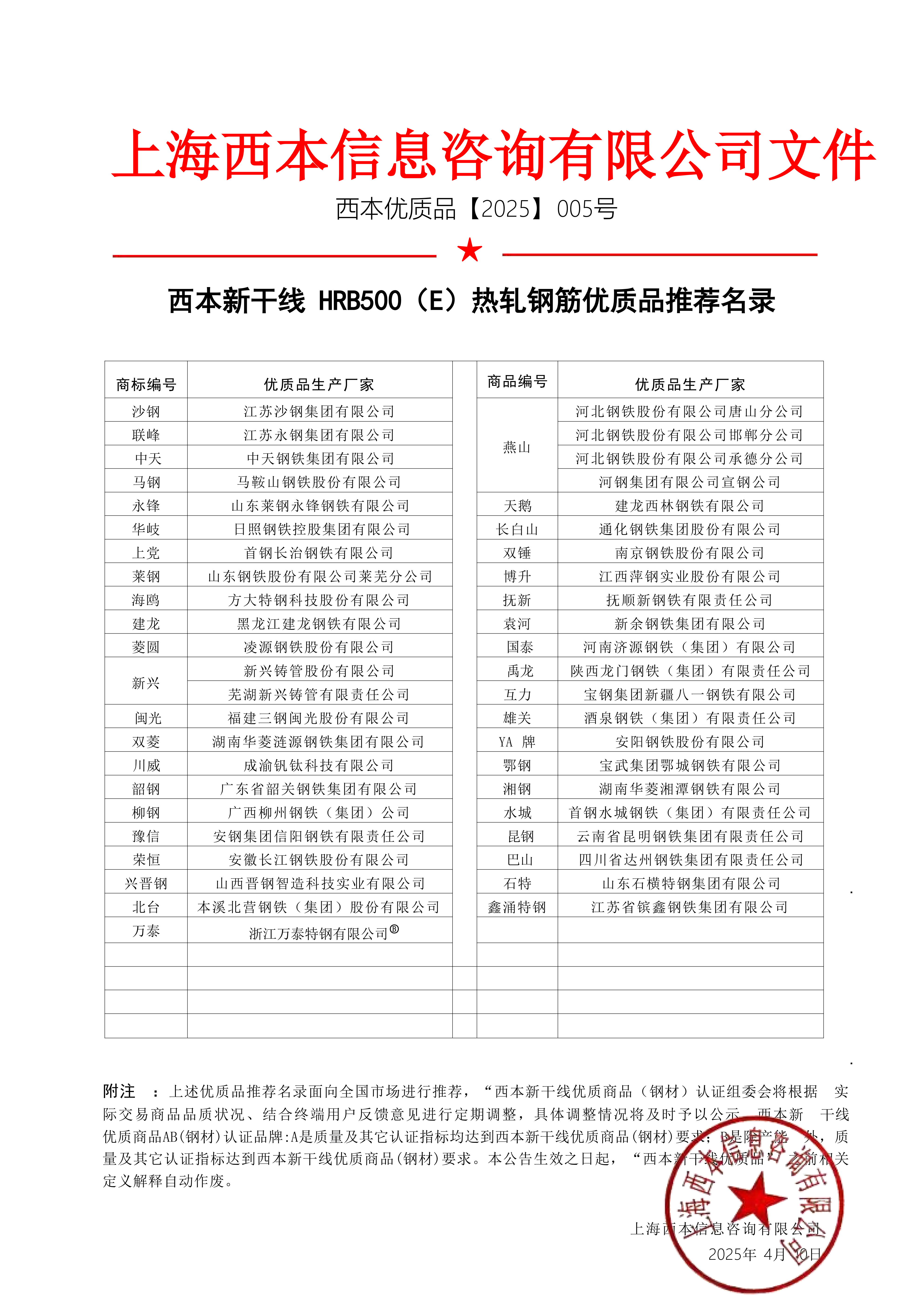 西本新干线hrb500(e)热轧钢筋优质品推荐名录
